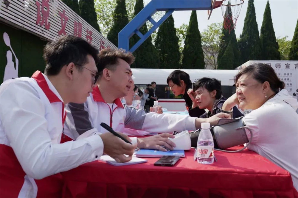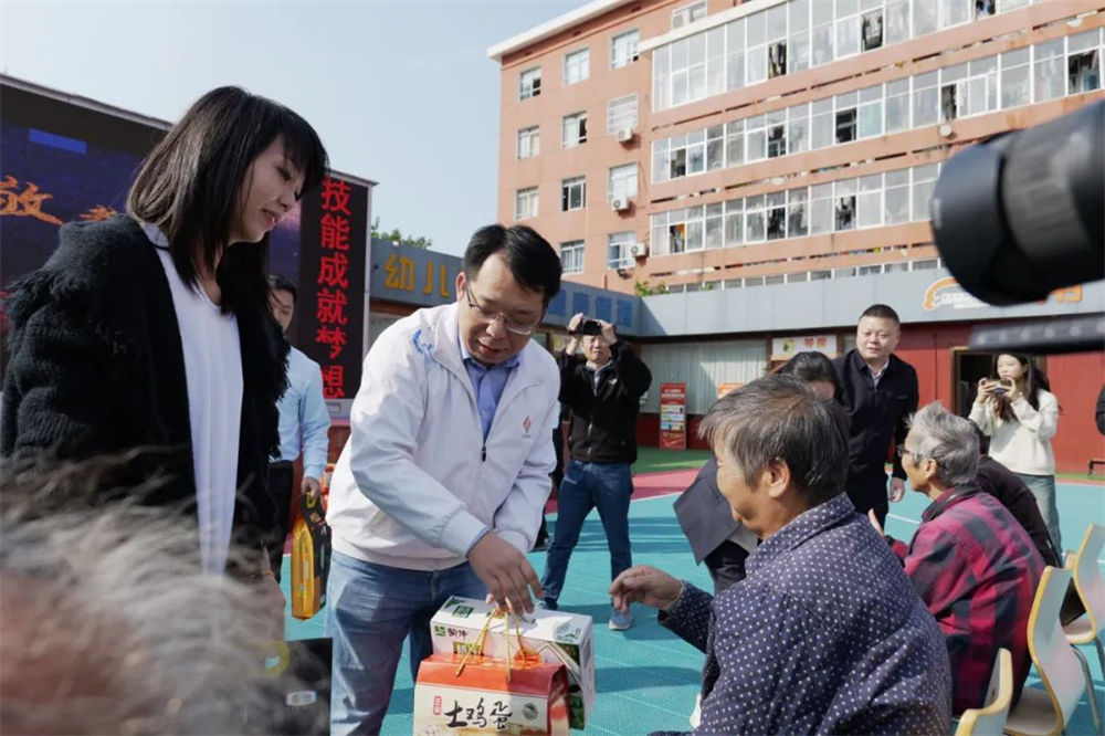为老人分发物资及提供义诊服务