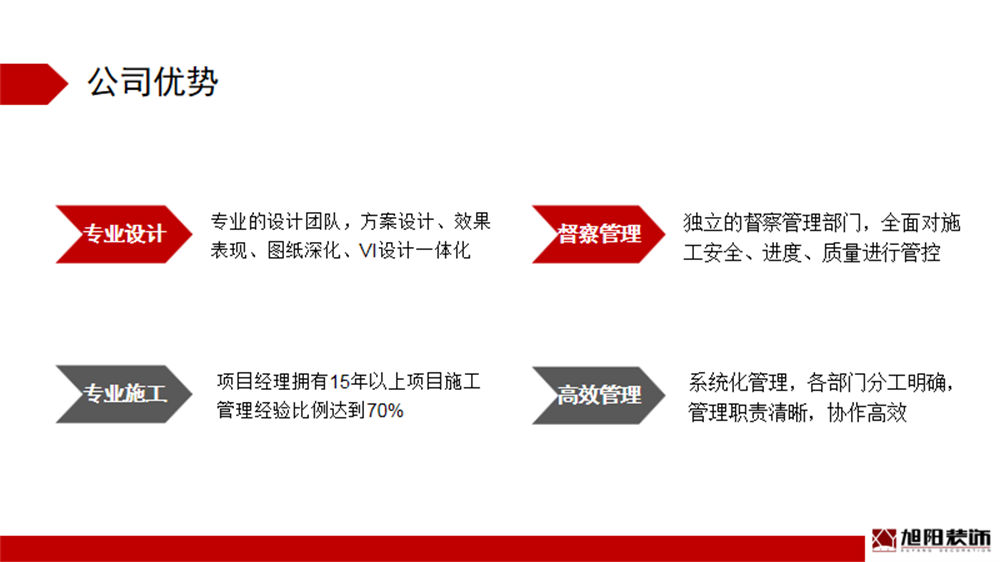 公司成立于2013年,主营业务:室内外装饰装修工程设计及施工,主要业务板块:一、工装:餐饮类、酒店类、办公类、会所精装。二、家装:大平层、别墅、豪宅。