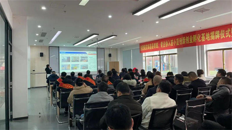 第一阶段举行入驻揭牌仪式,活动伊始,小蓝创新创业孵化基地负责人刘妍为大家详细介绍了孵化基地的运营模式、专业服务及支持政策。