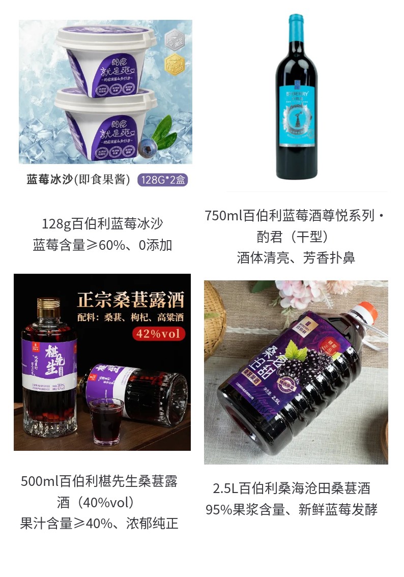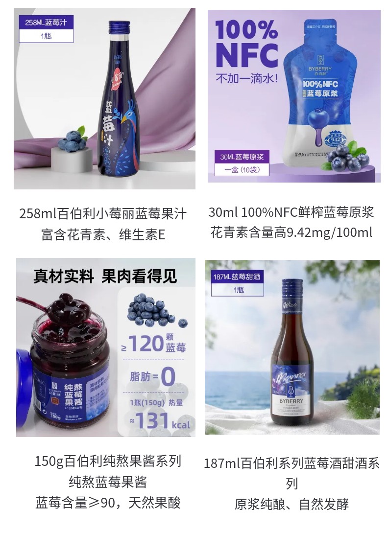 (一)、核心业务:公司主营产品为蓝莓及其他水果深加工产品,主要产品有“百伯利”牌蓝莓果汁、蓝莓酒、桑葚酒、蓝莓果酱、蓝莓原浆等果类加工产品。