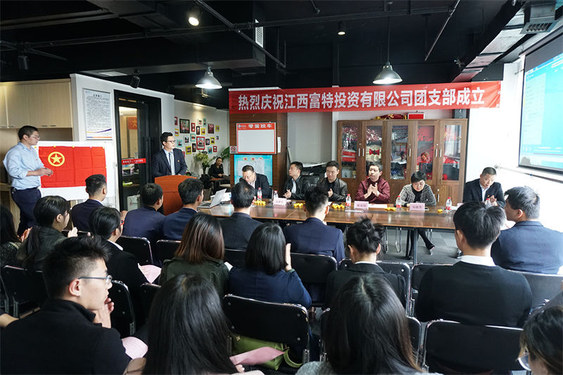 2017年10月20日,我BB贝博艾弗森官方网站副会长单位——江西富特投资有限公司团支部成立大会顺利召开。共青团青山湖区书记陈铄涛,南昌市青年企业家BB贝博艾弗森官方网站会长揭建刚,执行会长刘春荠、刘恒红、佘清雅,江西富特投资有限公司董事长褚江广,执行秘书长刘小琴、团工委书记陈细庆等出席成立大会。