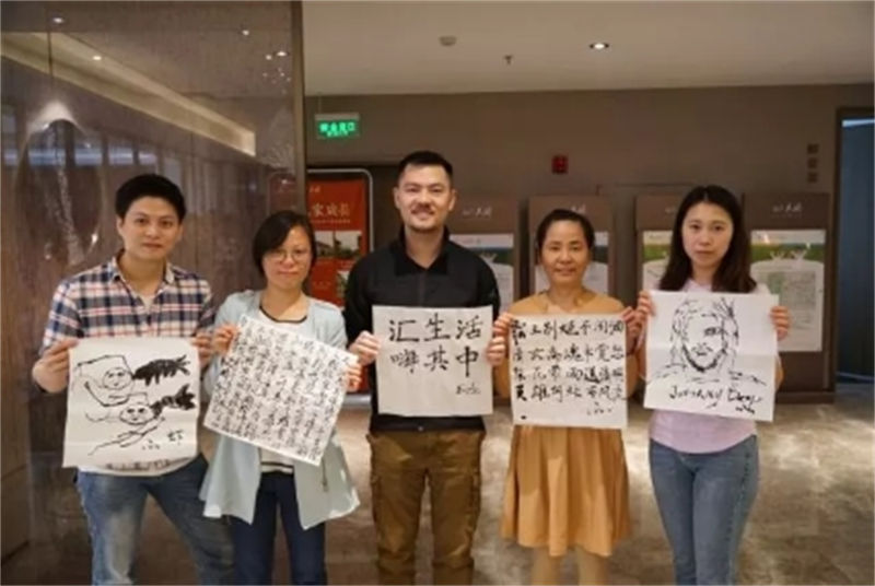 在场的各位青年通过书画的方法纷纷表达自己,作为新时代弄潮儿,要更加热爱自己的祖国,弘扬五四精神,与时代同心同向 让青春绽放光芒,百年追梦,青春无悔,让我们托起中国梦,撑起中国的希望。