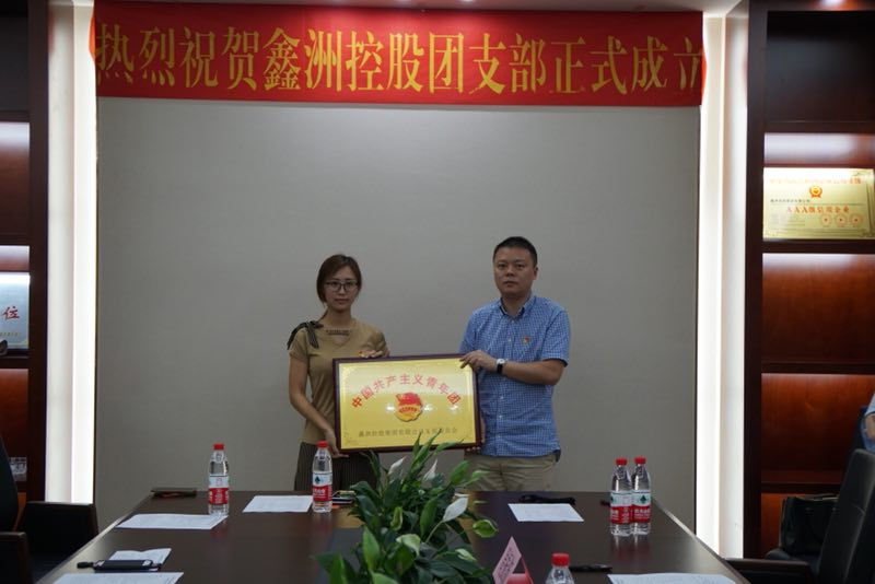 会上,全体肃立,奏唱国歌。由南昌市青年企业家BB贝博艾弗森官方网站团工委书记陈细庆宣读批复。鑫洲控股集团团支部书记马欢就鑫洲控股集团团青情况做了详细汇报。鑫洲控股集团总经理周涛对大家的到来及团支部的成立表示了感谢。共青团南昌市委副书记曾晋代表BB贝博艾弗森官方网站为鑫洲控股集团团支部的成立授牌并发表讲话称,首先祝贺鑫洲控股集团团支部的成立,希望鑫洲控股集团团支部能够按照相关规章制度积极开展活动,推动各项公益活动的发展。同时积极团结、凝聚公司青年力量,为企业、社会多做贡献。伴随着团歌的奏唱,隆重结束了本次成立大会。