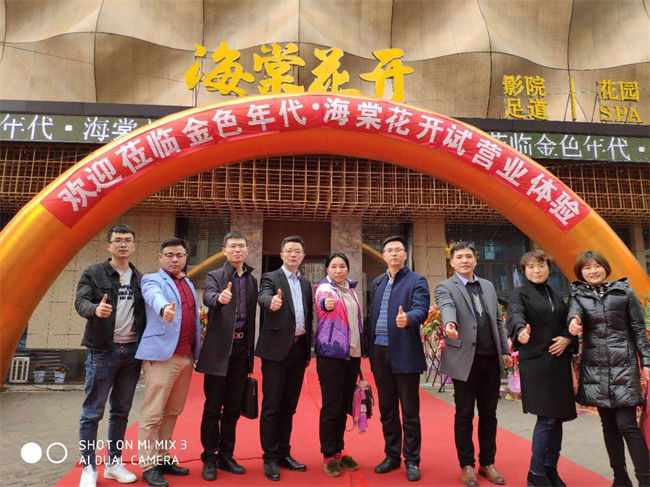 ?????2019年3月24日,南昌市青年企业家BB贝博艾弗森官方网站制造销售组会员企业江西神帆健康服务有限公司新店——金色年代·海棠花开红谷滩店盛大开业,制造销售组家人们前去道贺。公司副总经理卢文斌对会员家人们的到来表示热烈的欢迎,并向家人们介绍,金色年代·海棠花开是神帆集团旗下厚泽健康服务有限公司打造的全新一代影院足道旗舰店,7000平方米中式殿堂雅境,全明星影院足道、养生调理、水汇轻食,专业影院与足道养生的完美结合,营造绿色商务、健康休闲新体验!