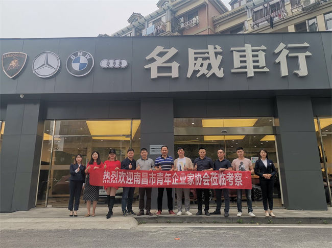 考察团一行来到副会长单位—南昌名威汽车销售有限公司,在总经理彭斌的热情招待及讲解下我们了解到,名威车行是一个高端综合品牌,凝聚众多名车品牌力量。自2018年3月开业从最初占地面积只有100多平米的雏形,经过一年的不懈努力扩展到现在的400平米的大车行,从展厅环境、硬件设备、到服务质量、品牌形象不断升级改造。2019年4月以来,名威以全新的面貌向全市人民递出了一张崭新的名片,立足江西南昌并将不断努力走向全国。