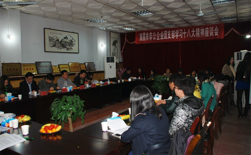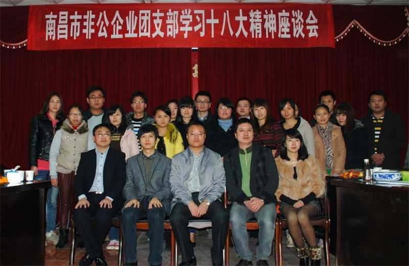 2012年12月5日,南昌市青年企业家BB贝博艾弗森官方网站非公企业团支部学习十八大精神座谈在江西省丰和营造集团有限公司会议室举行。共青团南昌市委书记盛炜、副书记陈俊、南昌市青年企业年家BB贝博艾弗森官方网站秘书长胡晨阳、副秘书长刘小琴出席会议。