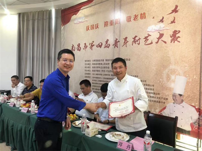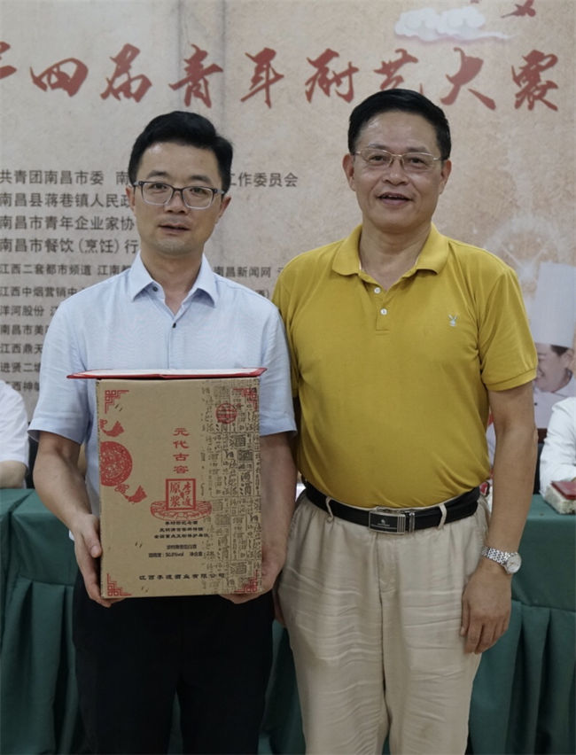 (南昌市直机关工委调研员盛建昌,市青企协副会长谢德平分别为铜厨奖得主颁奖)