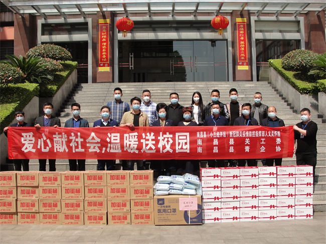 疫情防控指挥部人文关怀组、关工委携手南昌市青年企业家BB贝博艾弗森官方网站南昌县分会助力莲塘二中复学,关爱莘莘学子,4月8日上午,南昌县关工委常务副主任胡炜、县人文关怀组副组长付驰、黄花云、王国明、范海权、傅洪明,市青企协南昌县分会会长赵文扬、执行会长涂喜群、副会长齐义龙、喻美嘉、徐璐、理事陈清荣来到莲塘二中,了解学校开学防疫措施及物资储备情况,为学校送去了30箱牛奶、30箱方便面、6000个口罩,希望孩子们能够尽快进入状态备战高考。