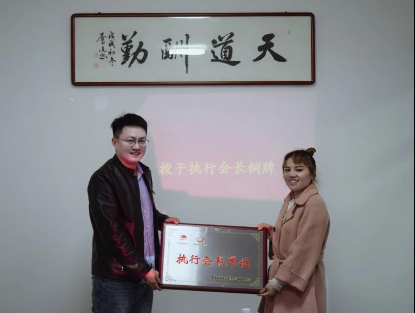 (共青团南昌县委书记付驰为江西环铭建设有限公司授予执行会长单位铜牌)