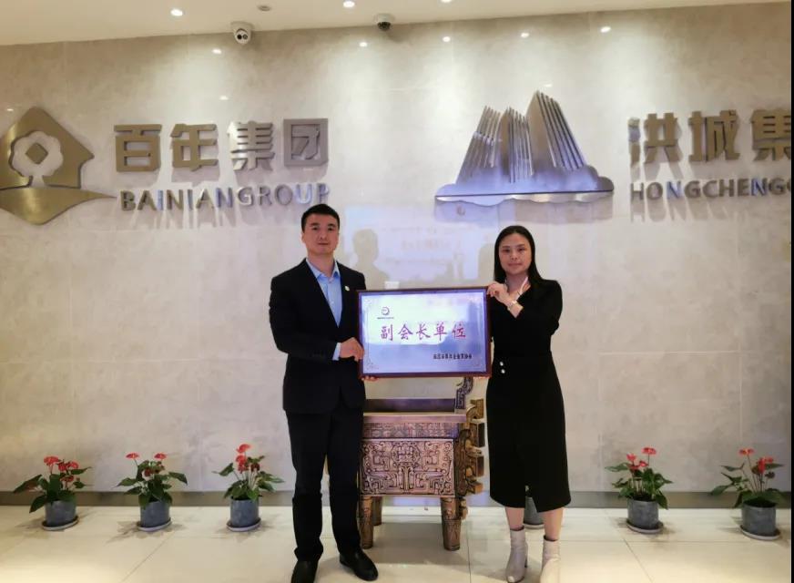市青企协执行会长蔡晓华授予百年建设集团总经理张祎萍副会长单位铜牌