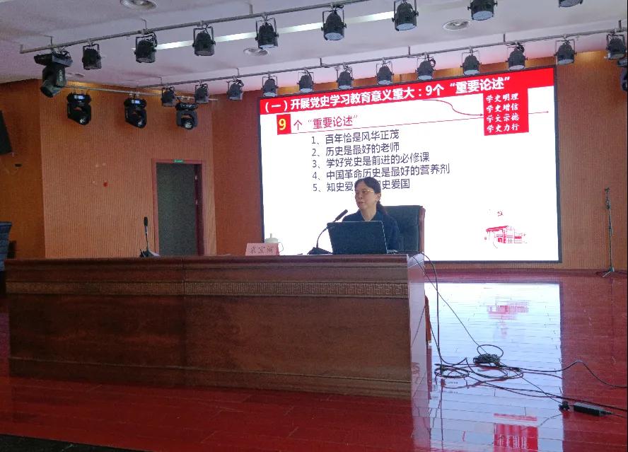 袁宜嫔教授以《学百年党史,奋斗新征程》为题,从“回眸百年党史,回望过往的奋斗路”、“汲取前进力量,眺望前方的奋进路”两个方面专题授课,为大家讲解了党史学习教育意义重大9个“重要论述”以及开展党史学习教育要突出重点6个“进一步”,通过此次学习,大家纷纷表示,进一步加强了学史明理、学史增信、学史崇德、学史力行的信心,并将党史学习教育激发出的热情转换为推动进一步工作的强大动力。