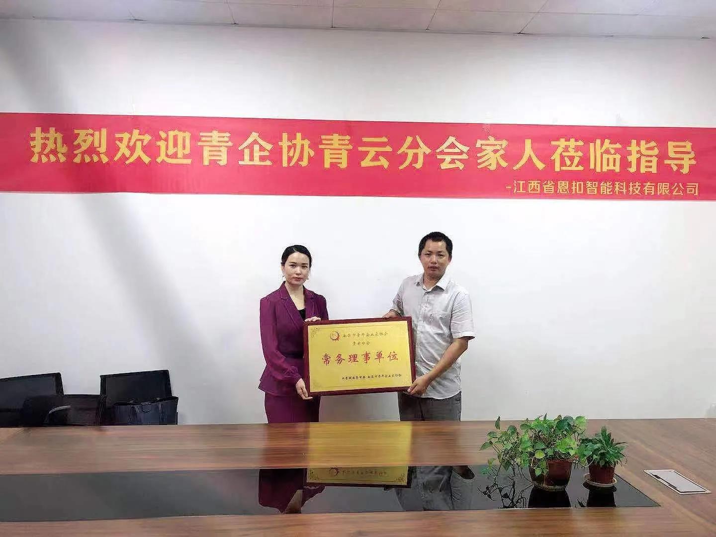 交流创造价值,互动增进友谊!7月6日,南昌市青企协青云分会会长王春玲带领会员家人走访并授牌新晋常务理事单位——江西省恩扣智能科技有限公司。随着夏日高温来袭,空气中弥漫着滚烫的味道。恩扣企业李国平李总热情地接待青云分会家人们到会议室降温降暑并以幻灯片方式介绍公司发展历程。