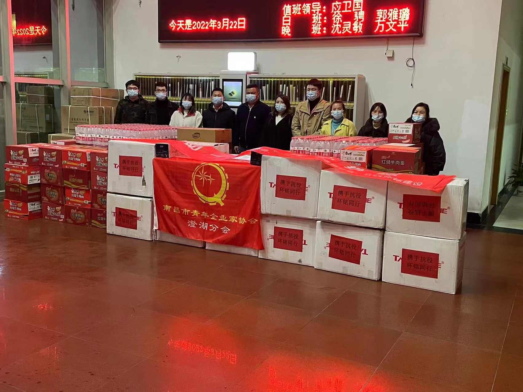 据悉,本次捐赠了矿泉水100箱,方便面100箱,牛奶50箱,面包50箱,冲锋衣200件。抗疫同心,青春同行。市青企协澄湖分会用责任和担当凝聚起抗击疫情的青春力量,用实际行动助力南昌打赢这场疫情防控阻击战。