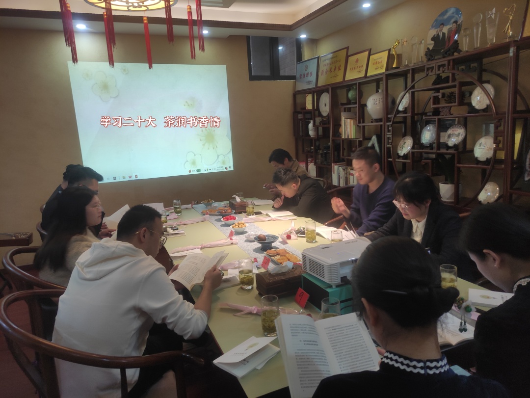 党的二十大胜利召开,是我国踏上全面建设社会主义现代化国家,向第二个百年奋斗目标进军的重要标志。为推动新时代青年更好地顺应时代发展潮流,争做有为青年,11月24日下午,南昌市青年企业家BB贝博艾弗森官方网站农旅科技组在红谷滩菩心阁茶庄开展“学习二十大 茶润书香情”主题活动。