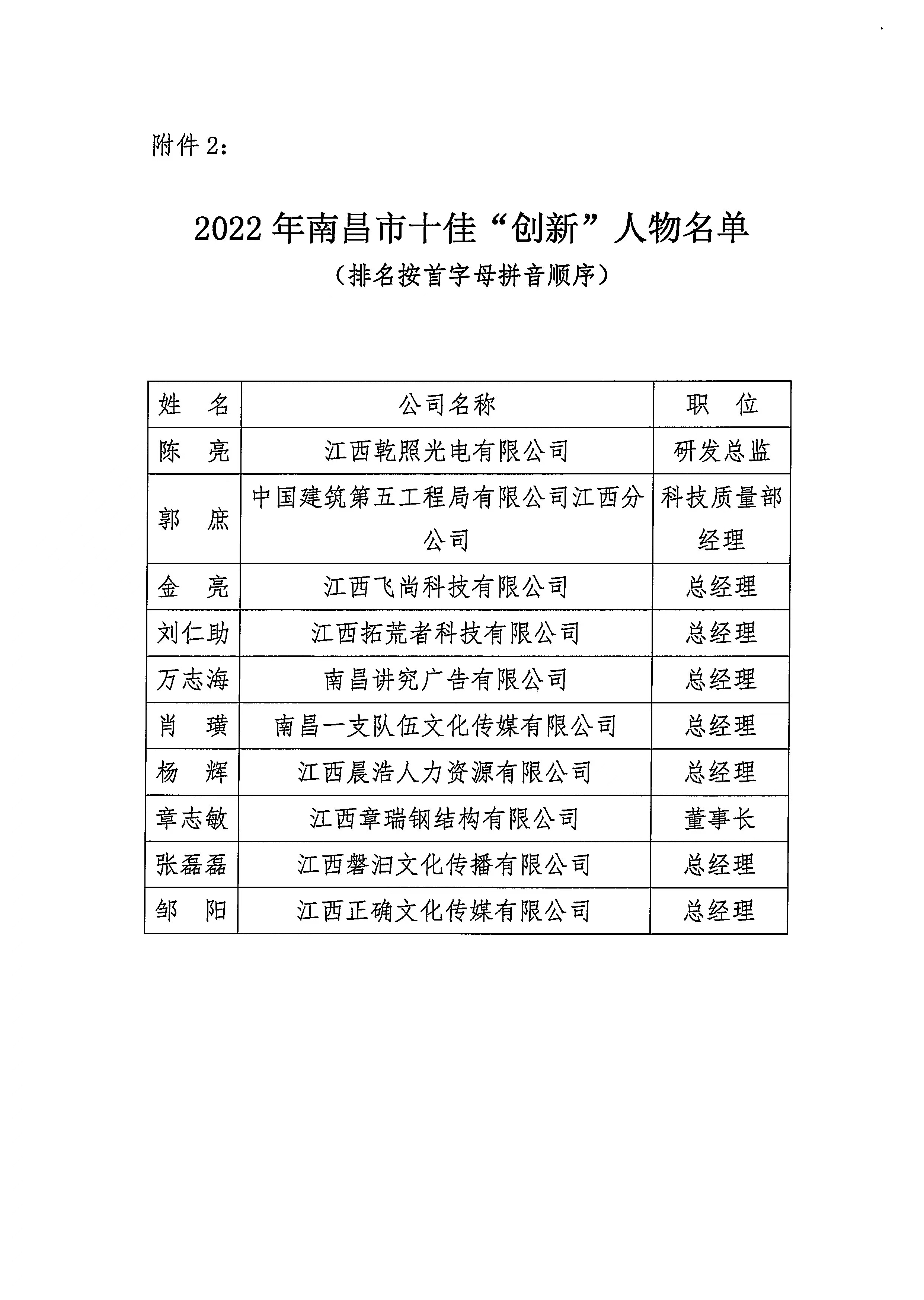 官方:关于公布第五届南昌市新时代十佳“创业、创新、创优”人物评选活动结果的通知。