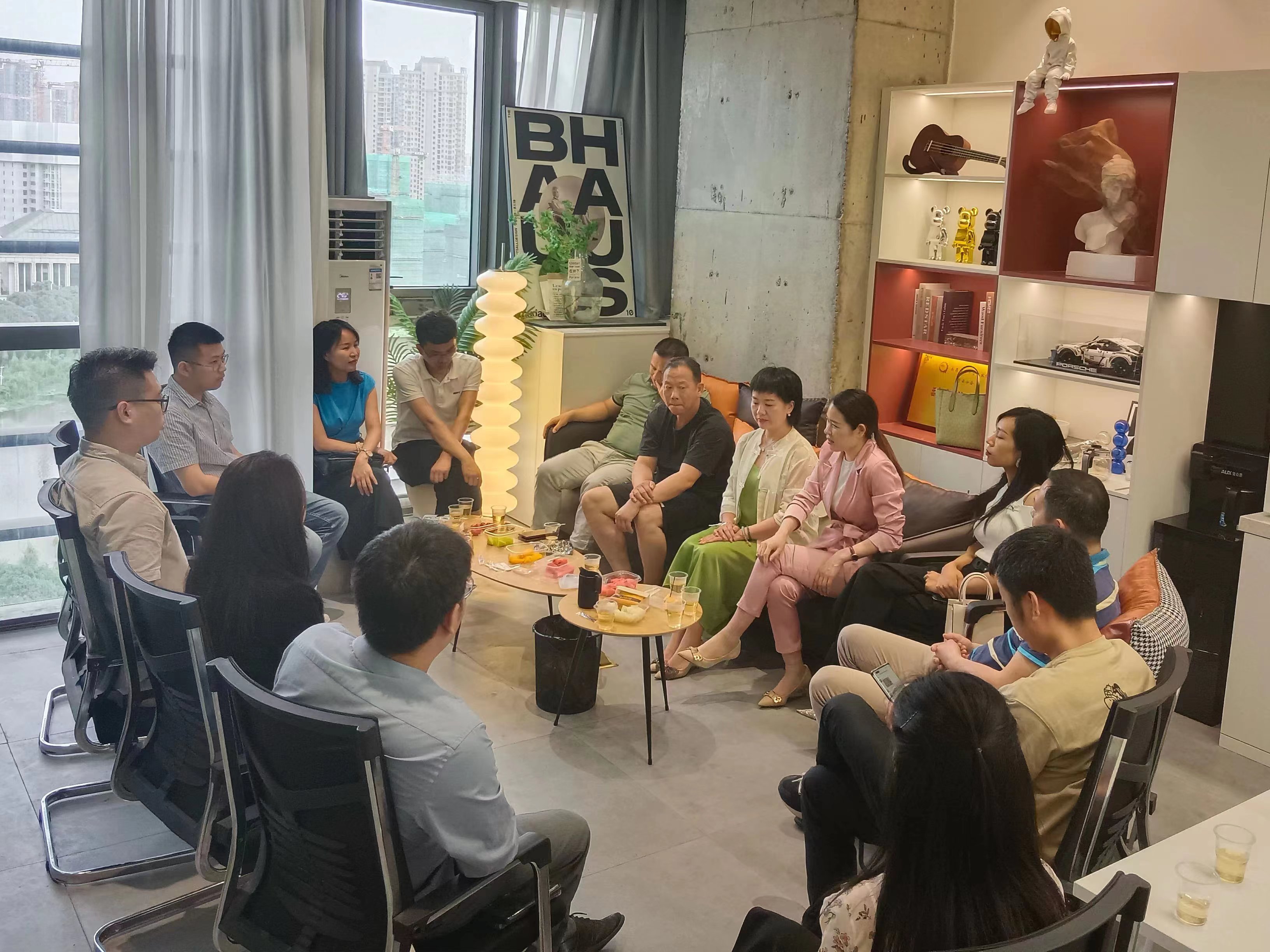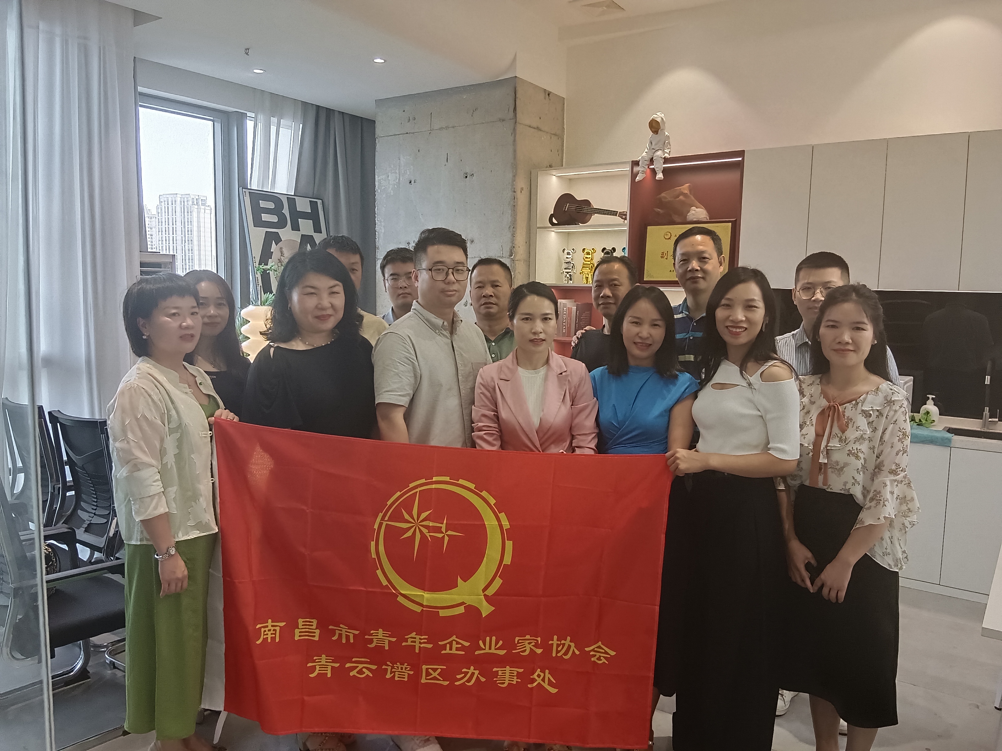 6月15日,南昌市青年企业家BB贝博艾弗森官方网站青云谱区办事处会长王春玲携会员家人彭芸、杨馥冰、袁华、 胡超、谈家胜、王茜华、马咏梅等来到新晋副会长单位-南昌市以碳设计工程有限公司参观交流,公司总经理谭琛热情接待。